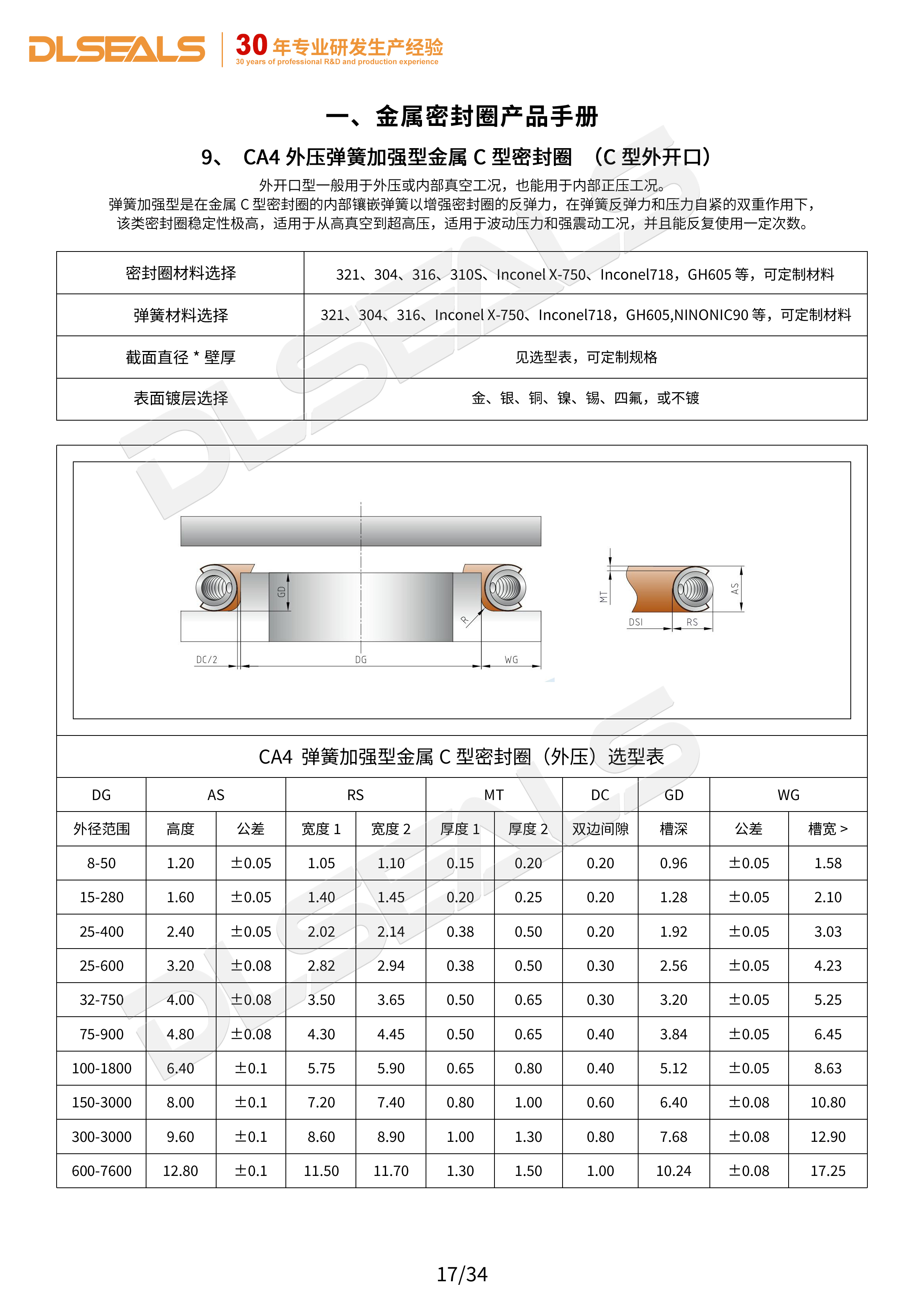 內壓彈簧加強型金屬C型密封圈